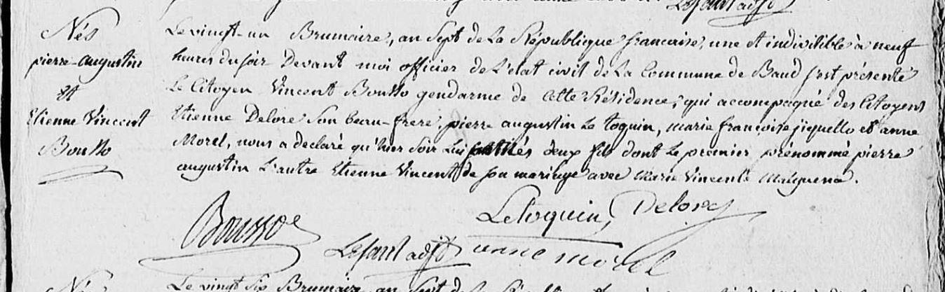 | Naissance BOUSSO Pierre Augustin - 1798 - Baud |