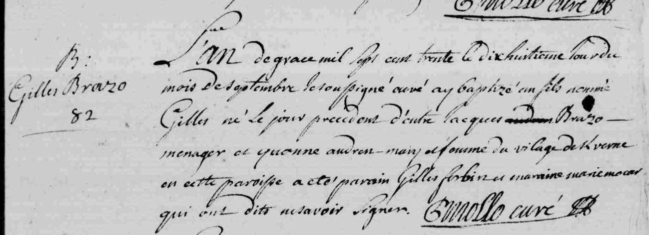 | 9. BRAZO Gilles Naissance : Date : 17/09/1730 Lieu : Riantec (56), Kerverne |