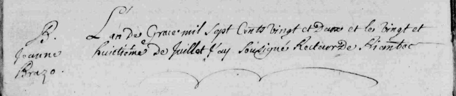 Baptême BRAZO Jeanne - 1722 - Riantec - 2 |