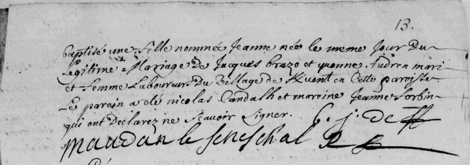 | 5. BRAZO Jeanne Naissance : Date : 28/07/1722 Lieu : Riantec (56), Kervent |