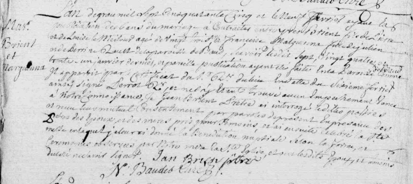 | Mariage BRIENT Yves MALGUENAC Françoise - 1745 - Camors |