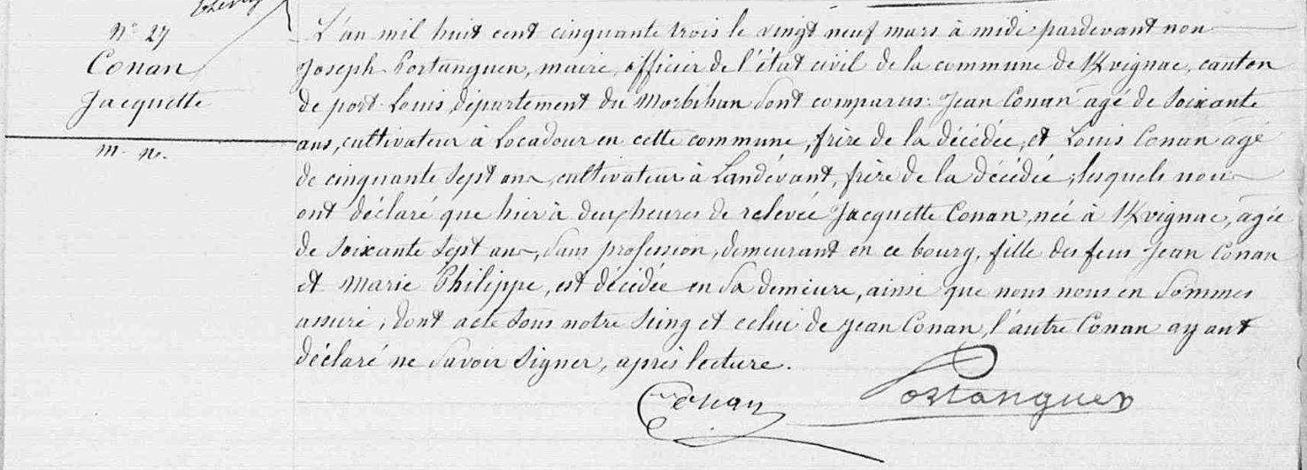 | Décès CONAN Jacquette - 1853 - Kervignac |