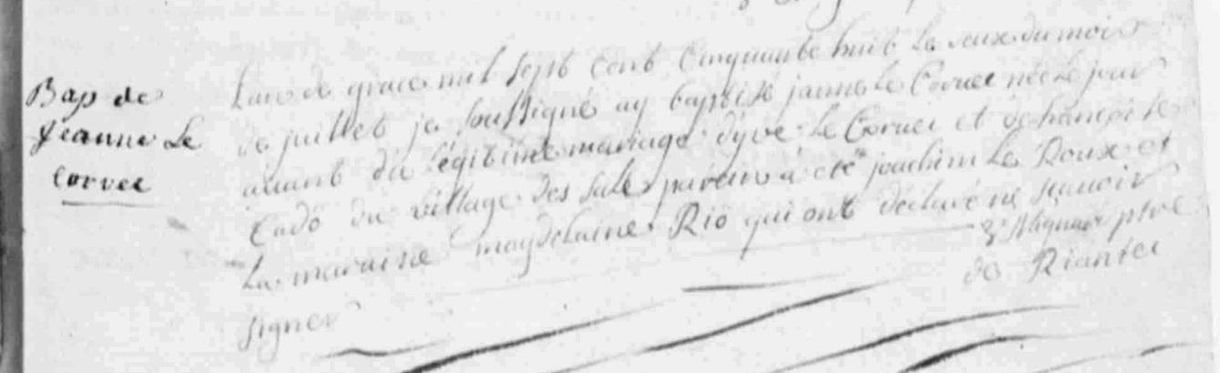 | Naissance CORVEC (LE) Jeanne - 1758 - Riantec |