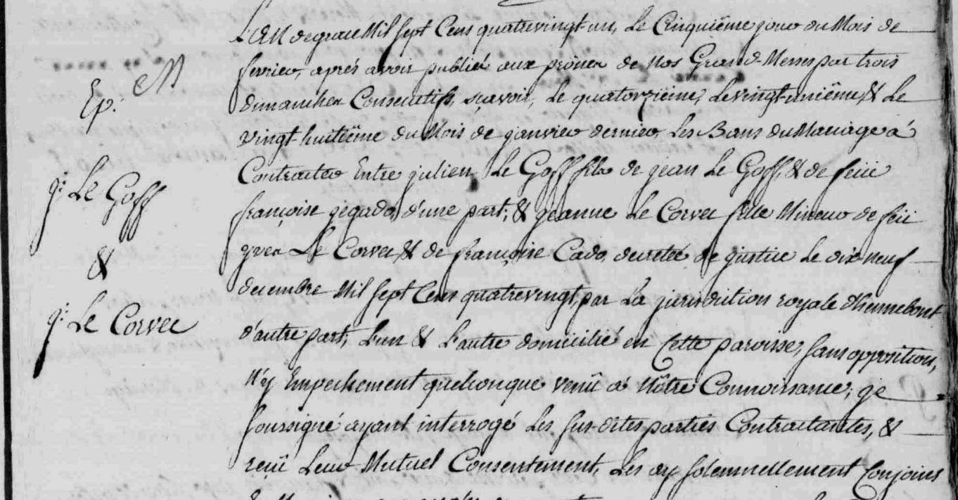 Mariage GOFF (LE) Julien CORVEC (LE) Jeanne - 1781 - Riantec - 1 |