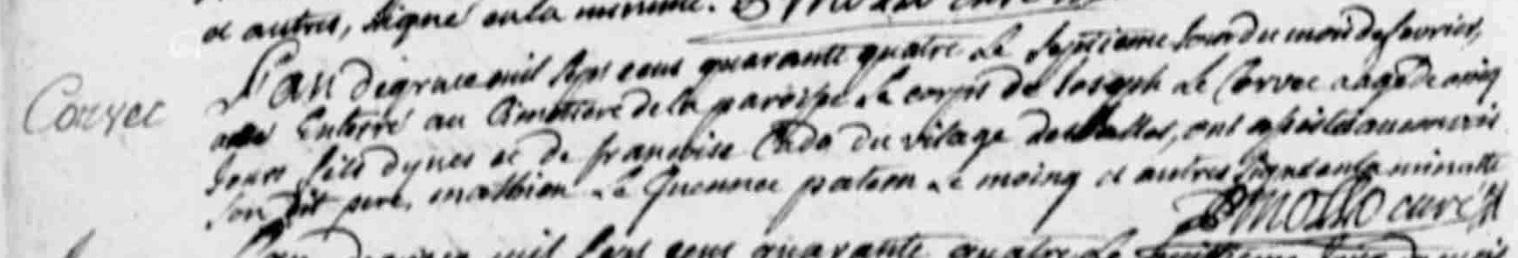 Décès CORVEC (LE) Joseph - 1744 - Riantec |