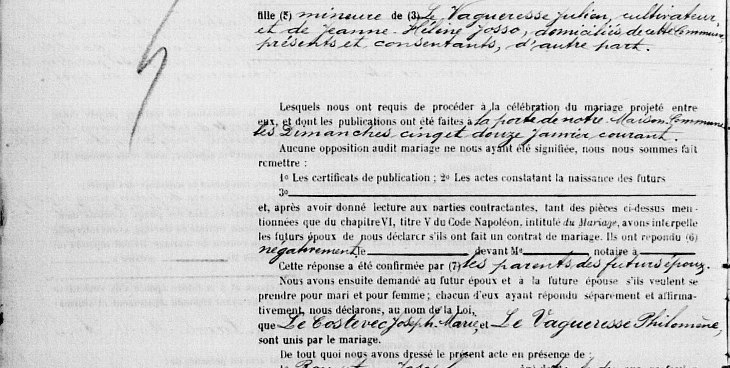 | Enfant(s) de COSTEVEC (LE) Joseph et de VAGUERESSE (LE) Philomène : - COSTEVEC (LE) Confidentiel, Sosa 6 Union : NICOL Confidentiel |
