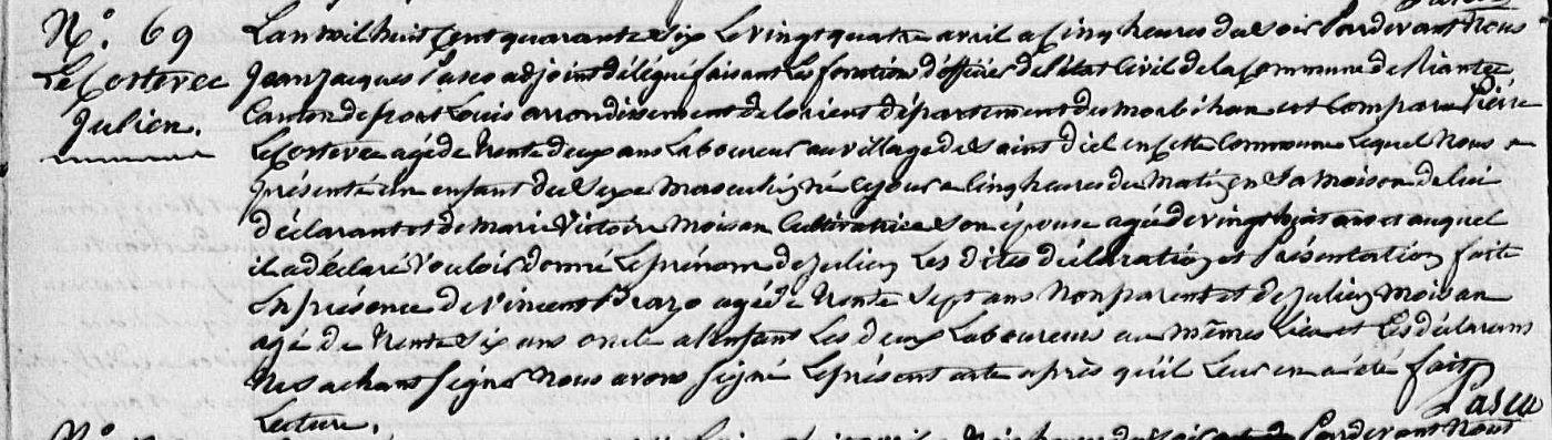 | Naissance COSTEVEC (LE) Julien - 1846 - Riantec |