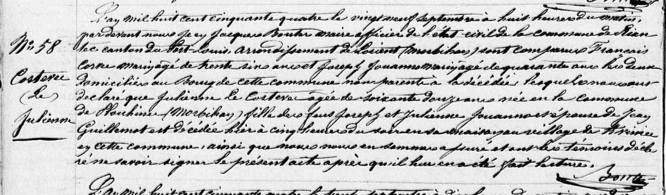 | Décès COSTEVEC (LE) Julienne - 1854 - Riantec |