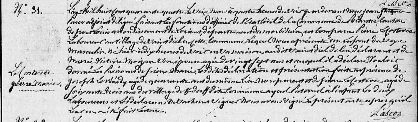 | 1. COSTEVEC (LE) Vincent Naissance : Date : 26/01/1748 Lieu : Plouhinec (56) |