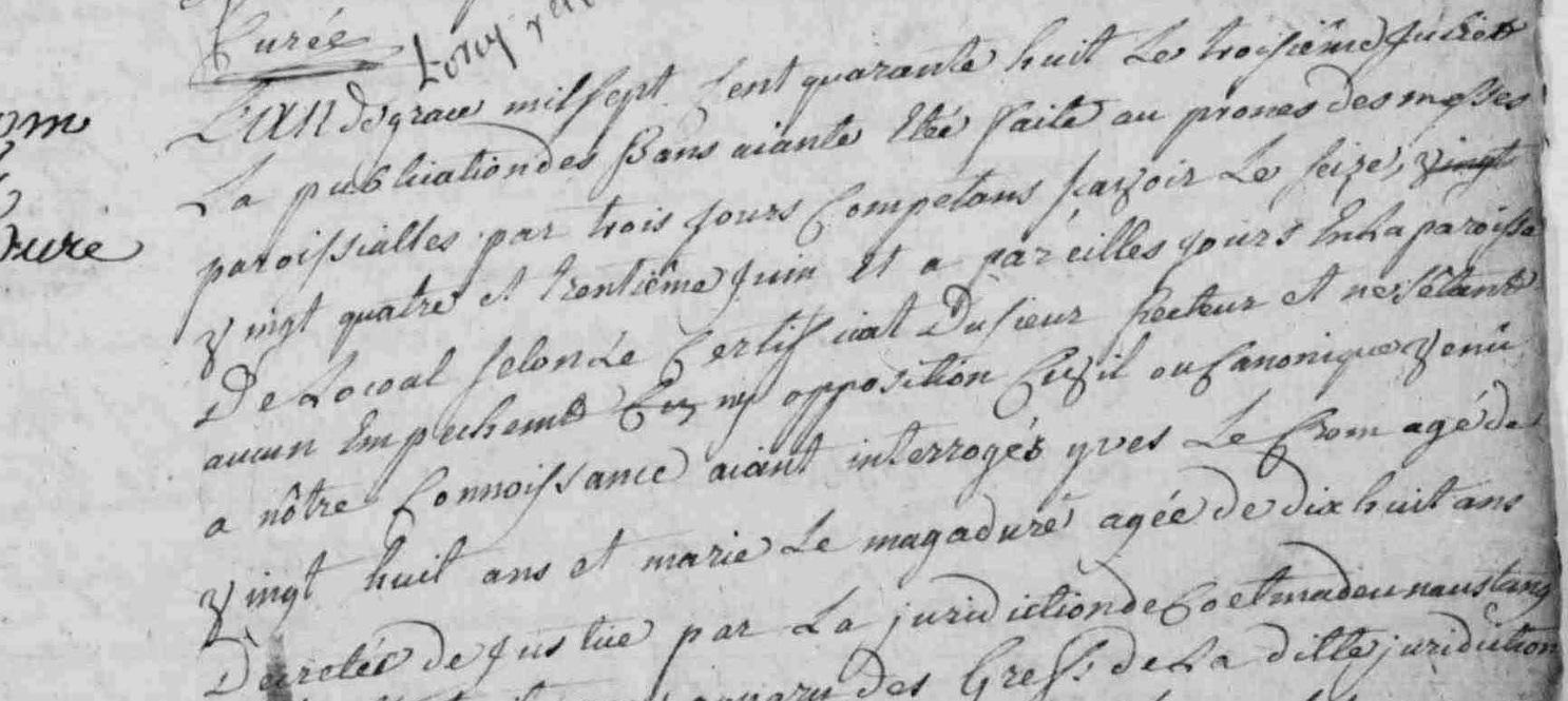 | Mariage CROM (LE) Yves MAGADUR (LE) Marie - 1748 - Nostang - 1 |