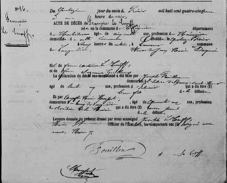 | Décès CUNFF (LE) Françoise - 1881 - Languidic |