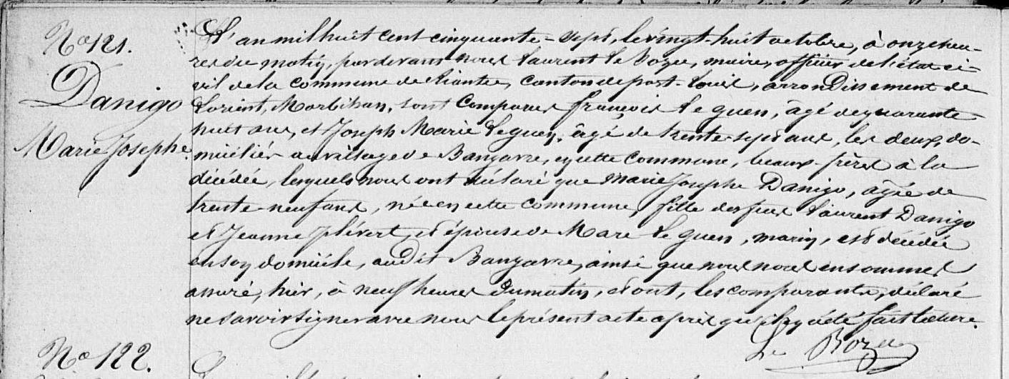 Décès DANIGO Marie Josephe - 1857 - Riantec |