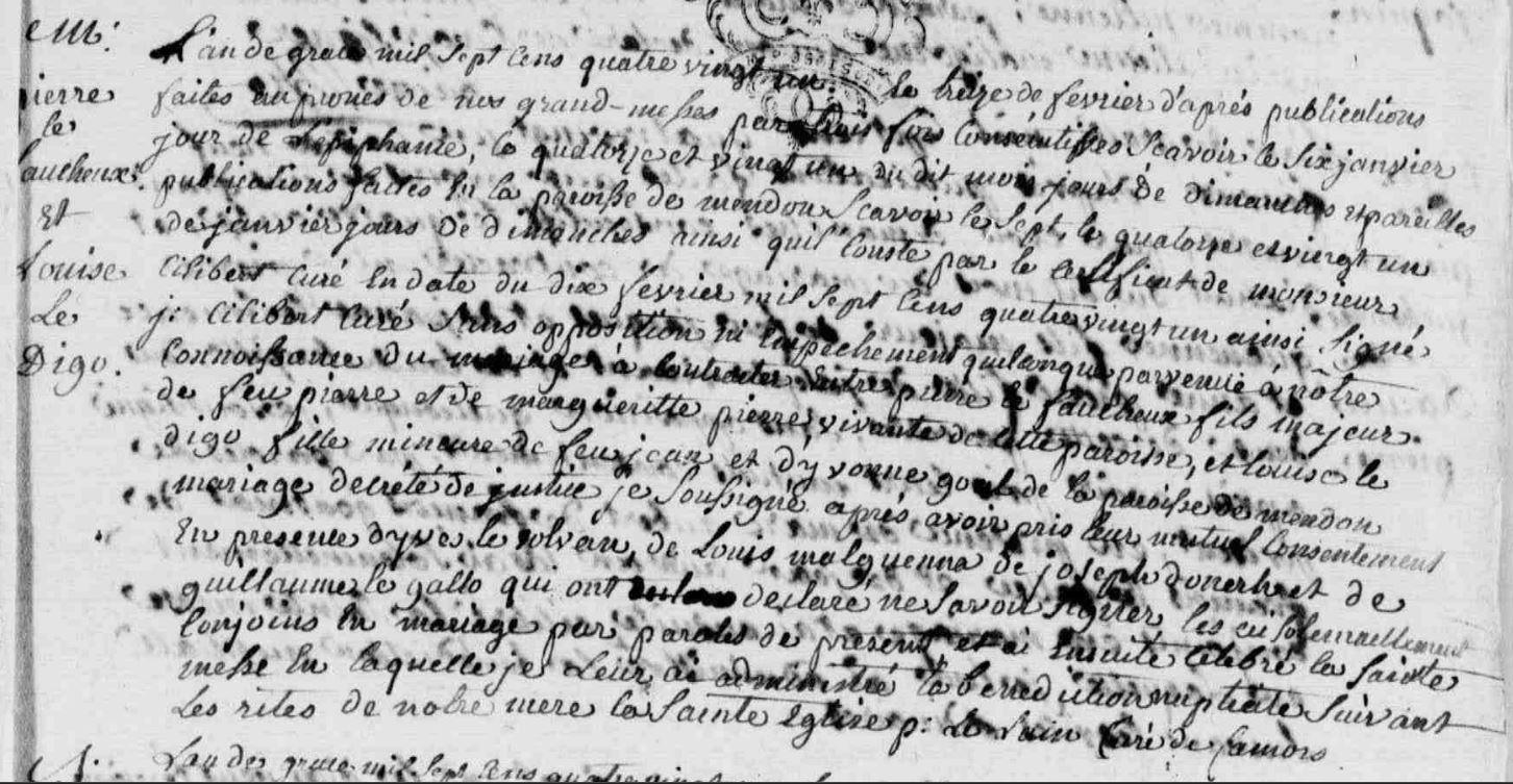 | Mariage FAUCHEUX (LE) Pierre DIGO (LE) Louise - 1781 - Camors |
