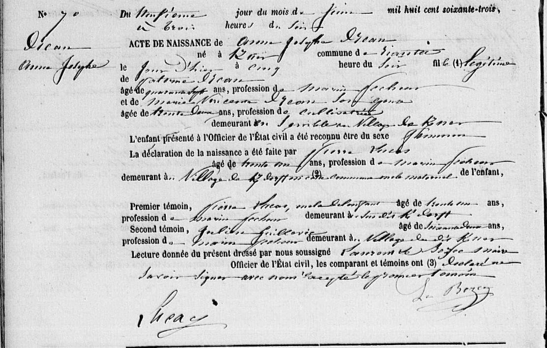 | Naissance DREAN Anne Josephe - 1863 - Riantec |