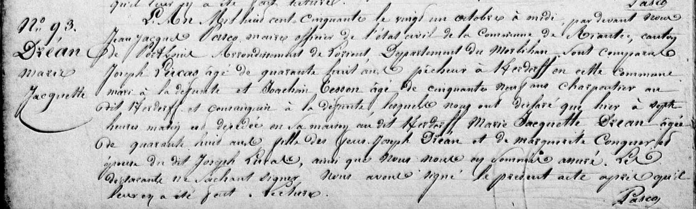 | Décès DREAN Marie Jacquette - 1850 - Riantec |