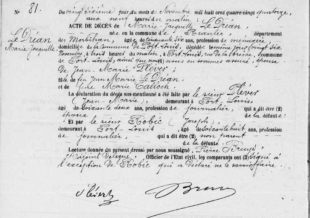 Décès DREAN (LE) Marie Jacquette - 1894 - Port-Louis |
