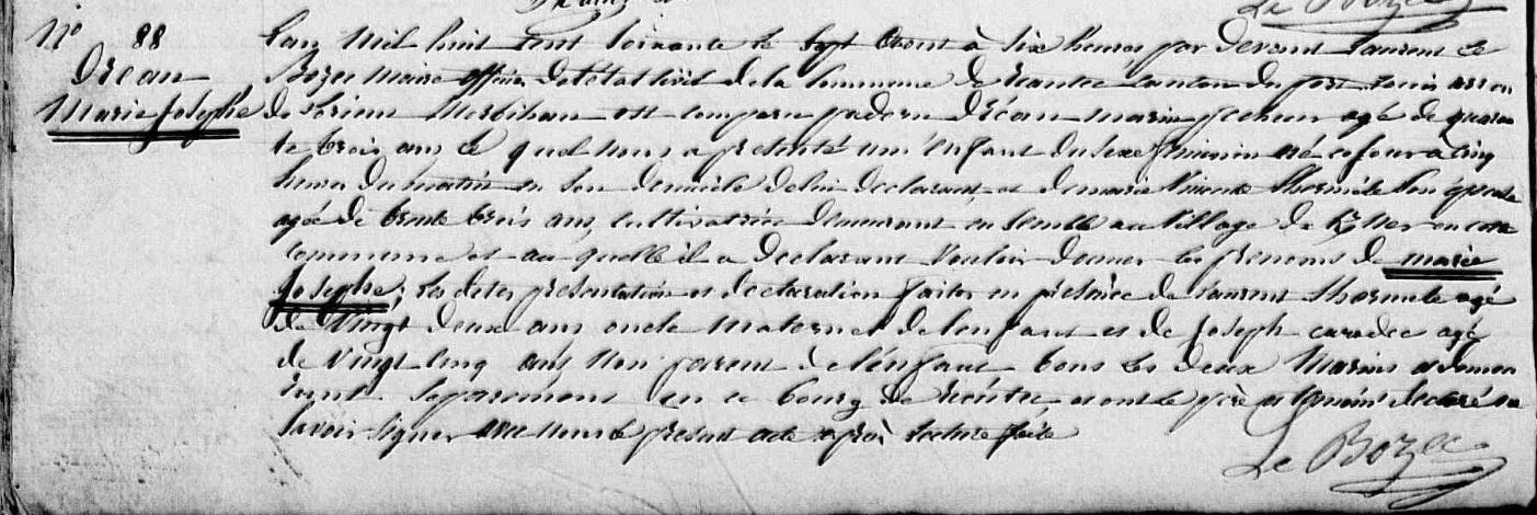 | 1 Note, Décès : Auparavant, noté 25/01/1869 à Riantec. Corrigé par l'acte de Mariage de son fils Vincent avec Radegonde DREAN et aussi par l'acte de Mariage de sa fille Joséphine avec Joseph MARGANA. A vérifier. |