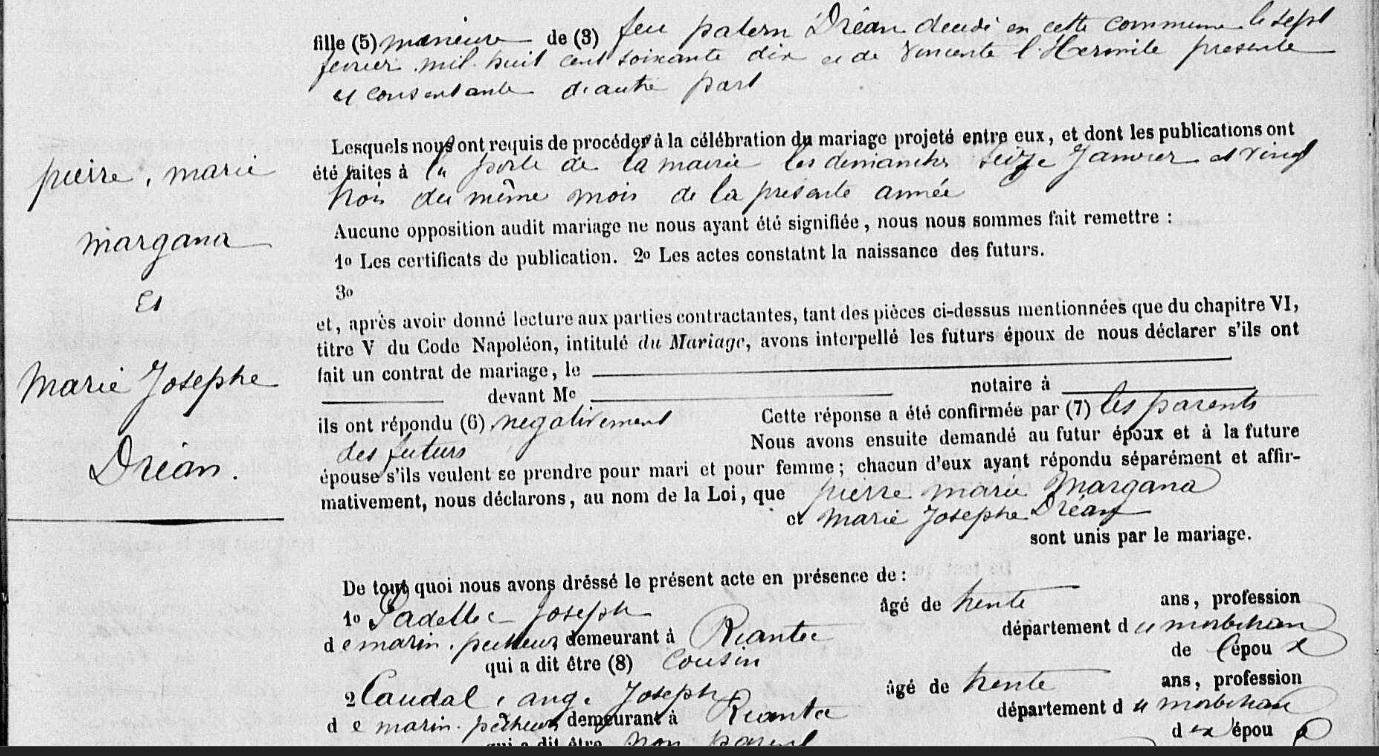 Mariage MARGANA Pierre Marie DREAN Marie Josephe - 1881 - Riantec - 2 |