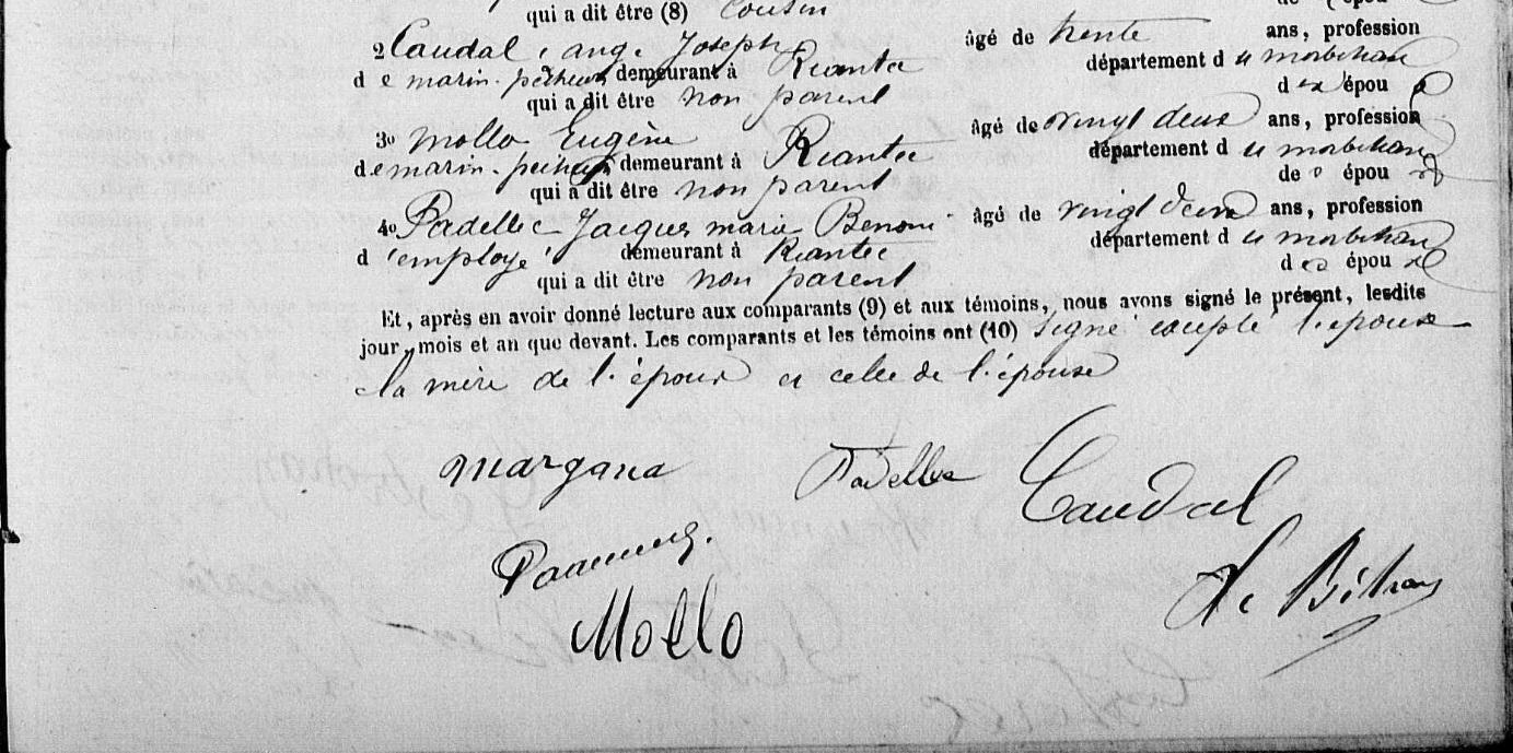 Mariage MARGANA Pierre Marie DREAN Marie Josephe - 1881 - Riantec - 3 |