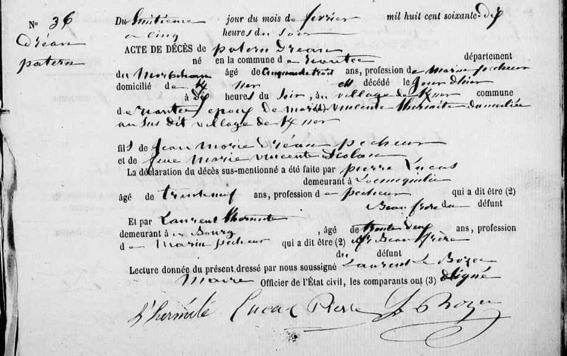 | 3. DREAN (LE) Laurent Naissance : Date : 10/06/1858 Lieu : Riantec (56), Kerner |