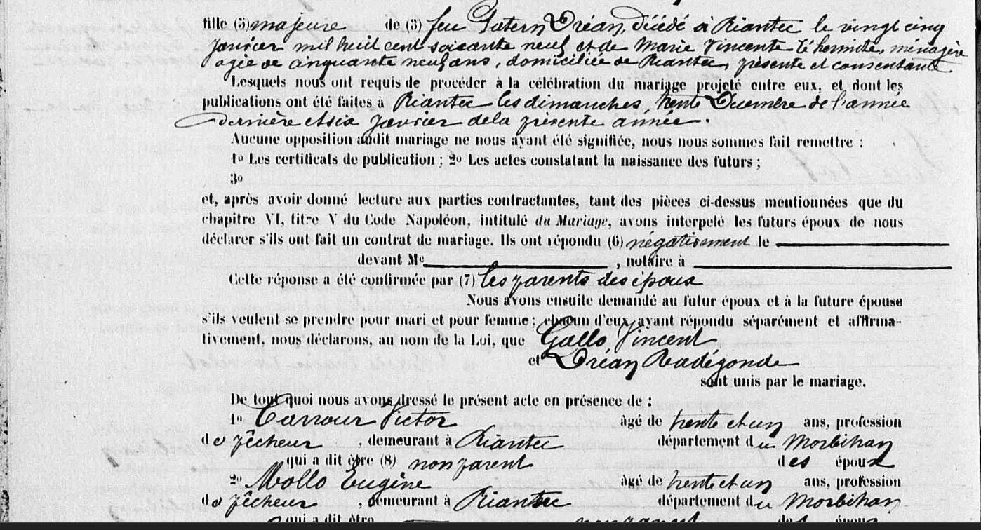 Mariage GALLO Vincent DREAN Radegonde - 1889 - Riantec - 3 |