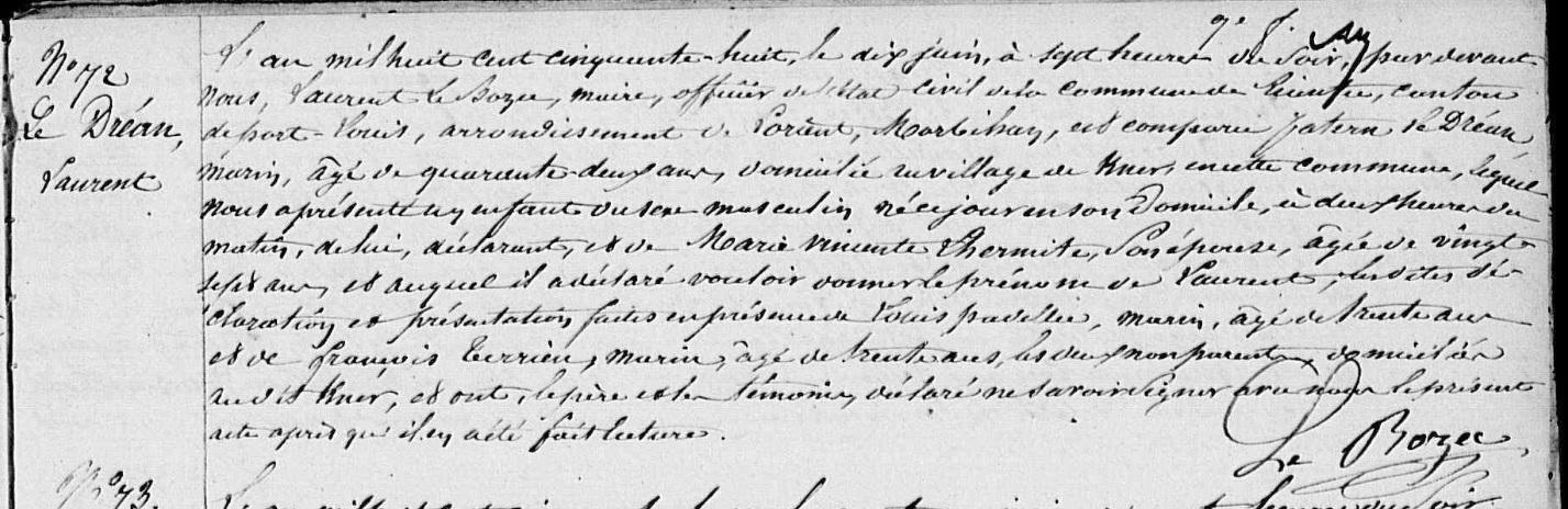 | Naissance DREAN (LE) Laurent - 1858 - Riantec |