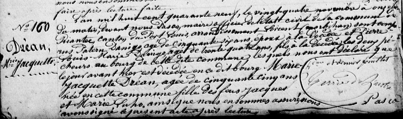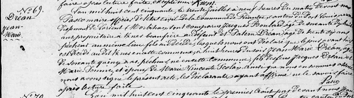 | 2. DREAN Pierre Naissance : Date : 28/10/1805 Lieu : Riantec (56) |