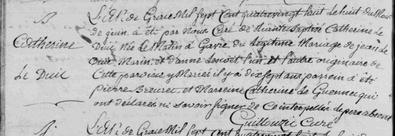 | Baptême DUIC (LE) Catherine - 1788 - Riantec |