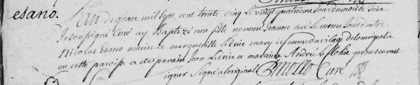 | Baptême EZANO Jeanne - 1735 - Riantec |