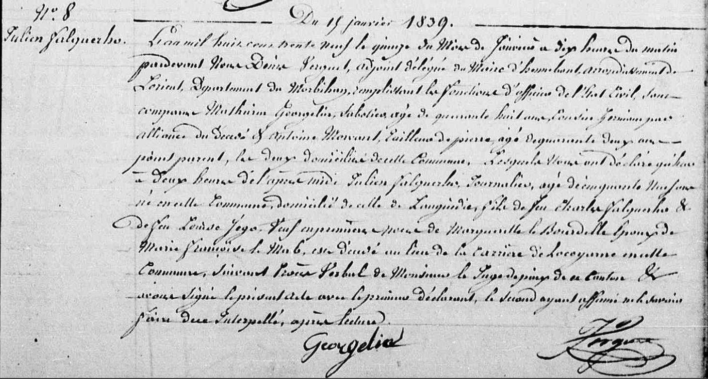 | Décès FALQUERHO Julien - 1839 - Hennebont |
