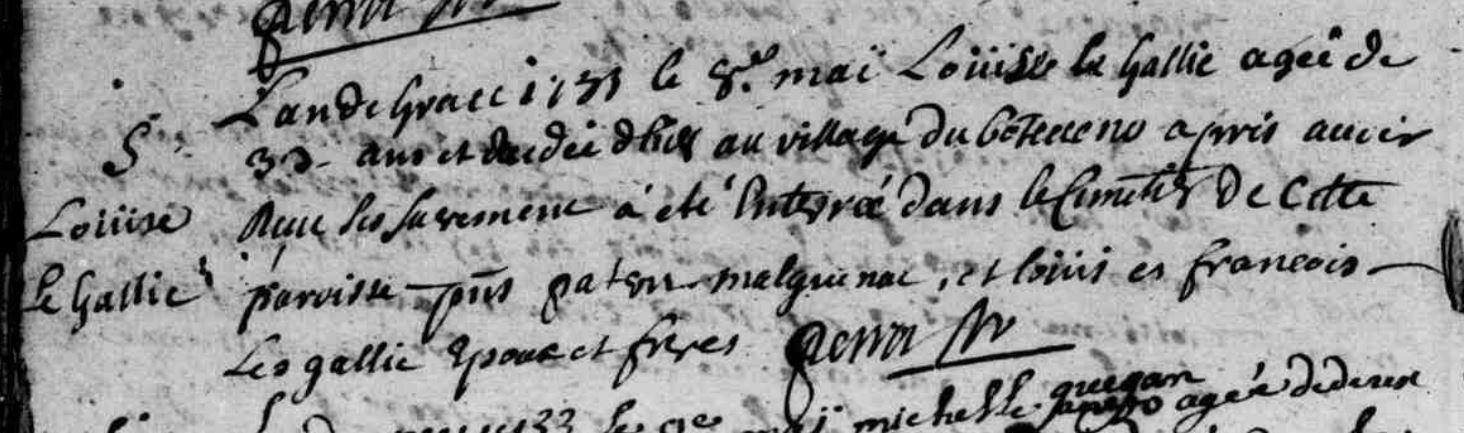 Sépulture GALLIC (LE) Louise - 1733 - Baud |