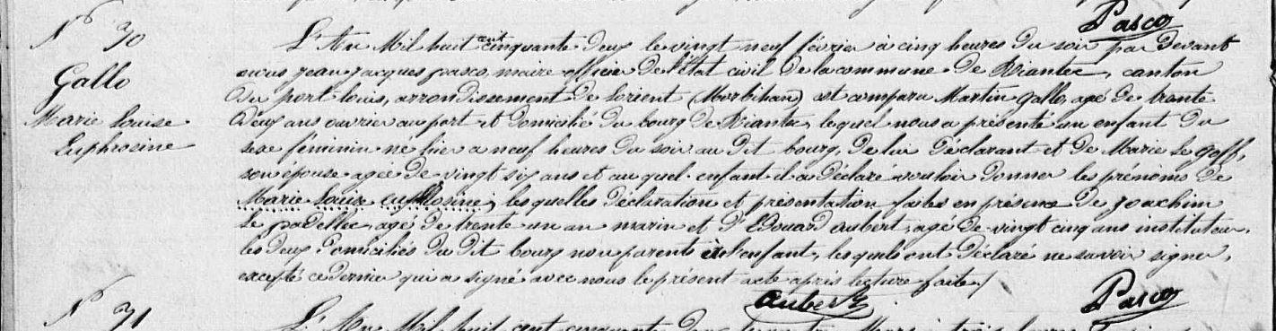 | Naissance GALLO Marie Louise Euphrosine - 1852 - Riantec |