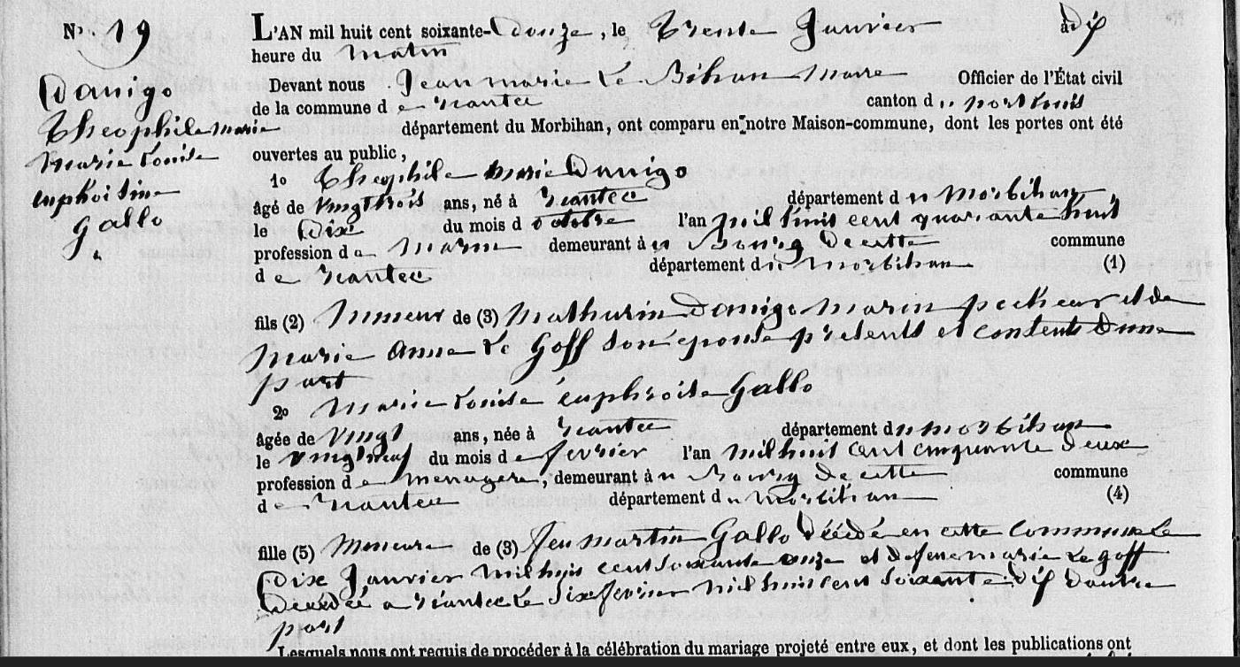 Mariage DANIGO Théophile Marie GALLO Marie Louise Euphrosine - 1872 - Riantec - 3 |