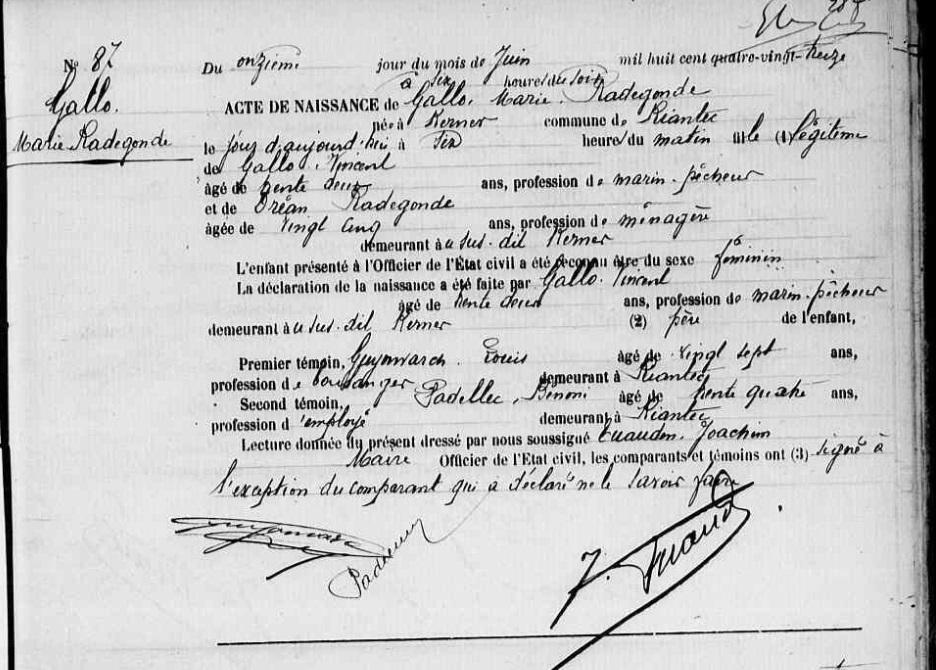 | Naissance GALLO Marie Radegonde - 1893 - Riantec |