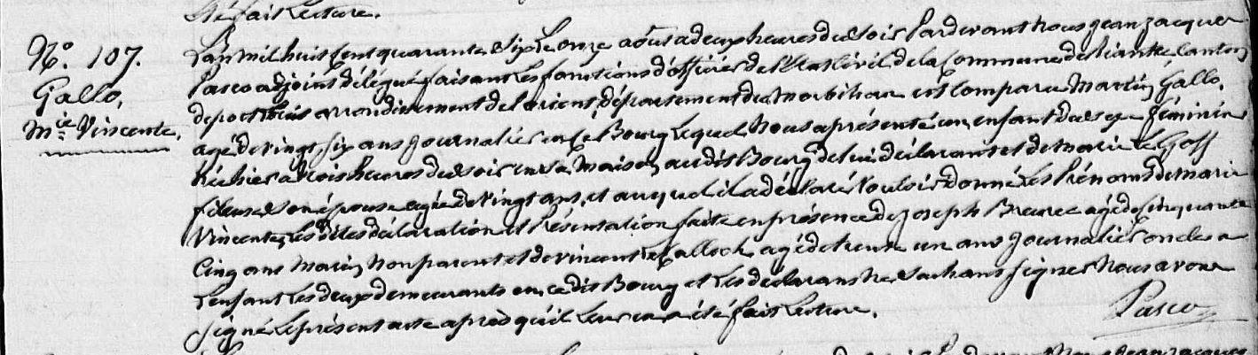 | Naissance GALLO Marie Vincente - 1846 - Riantec |
