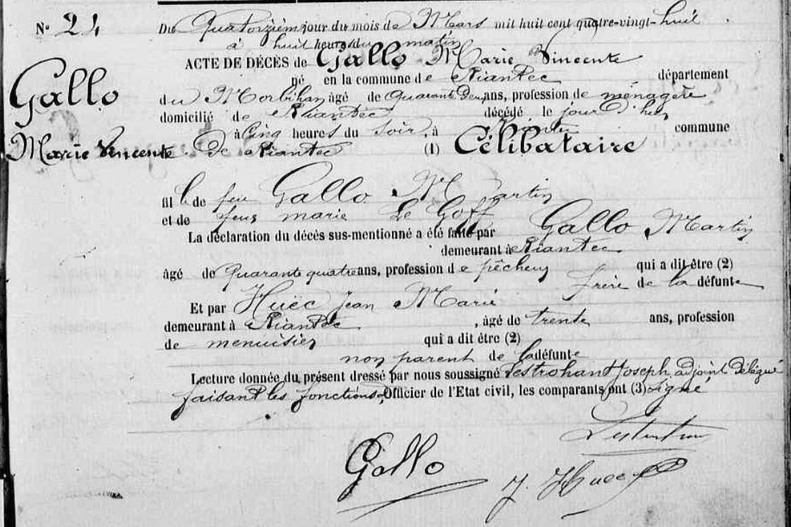 Décès GALLO Marie Vincente - 1888 - Riantec |