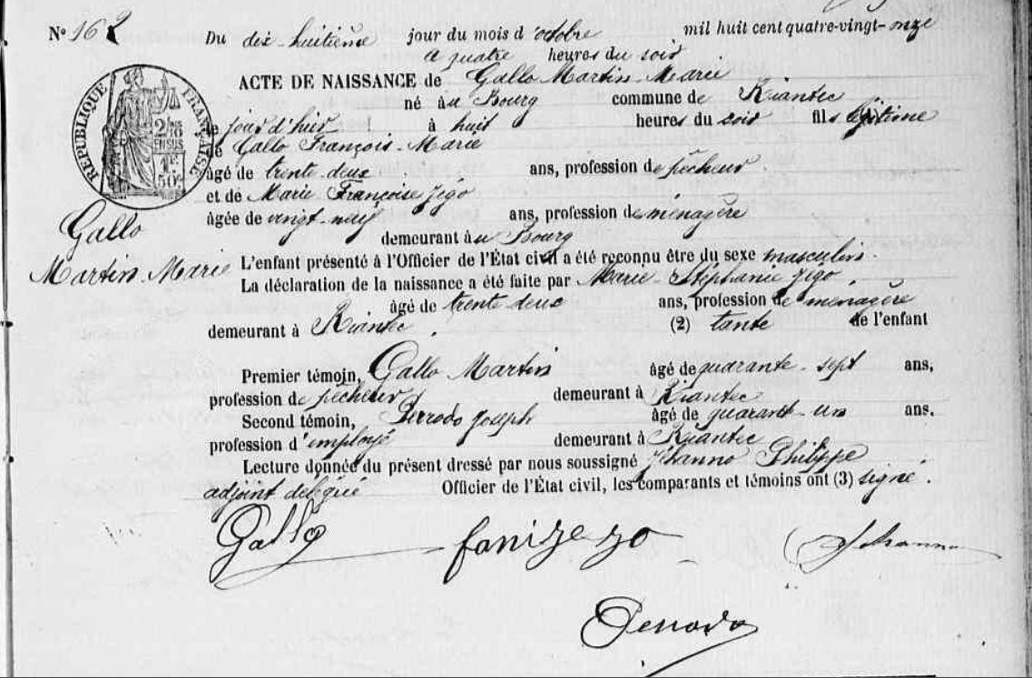 | Naissance GALLO Martin Marie - 1891 - Riantec |
