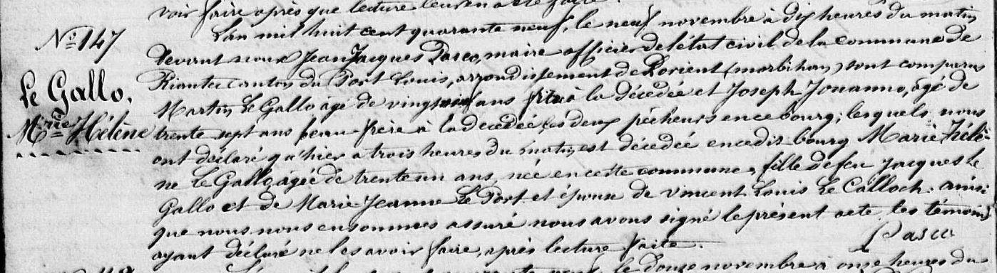 Décès GALLO (LE) Marie Hélène - 1849 - Riantec |