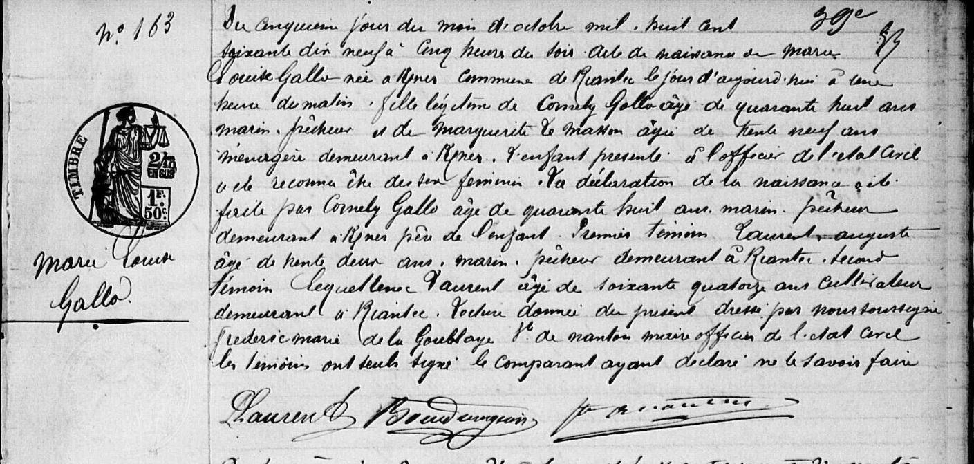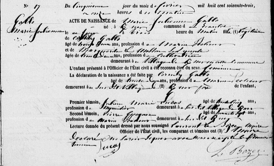 | Naissance GALLO Marie Julienne - 1863 - Riantec |