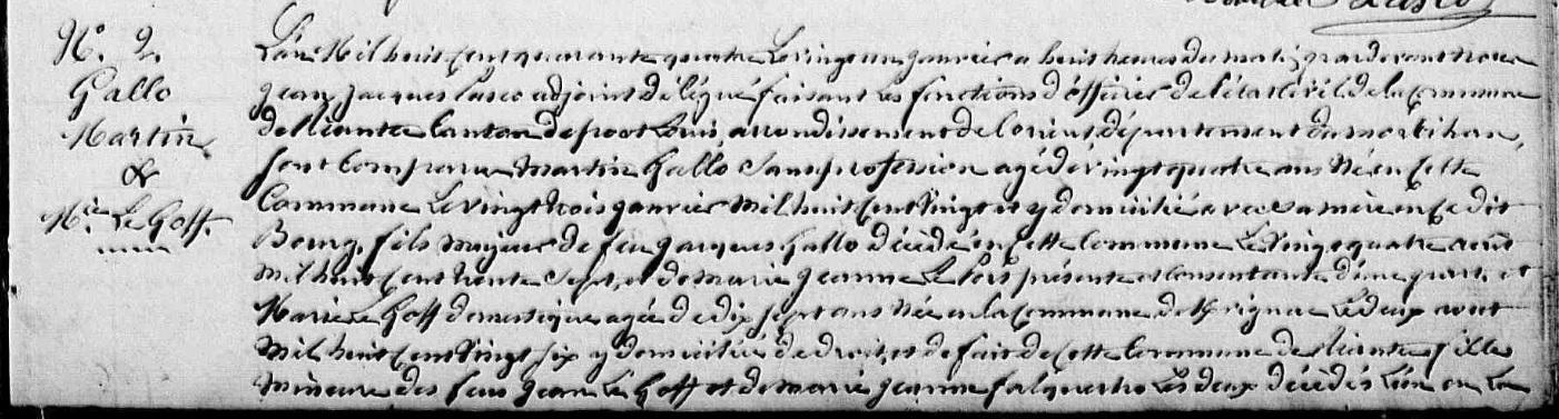 | Mariage GALLO Martin GOFF (LE) Marie - 1844 - Riantec - 1 |