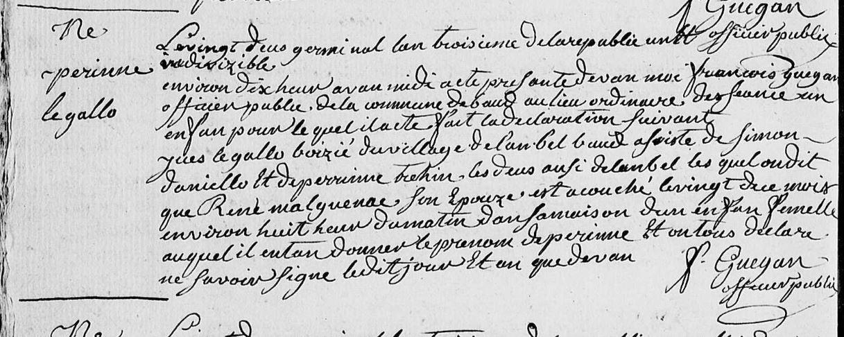 | Naissance GALLO (LE) Perrine - 1795 - Baud |
