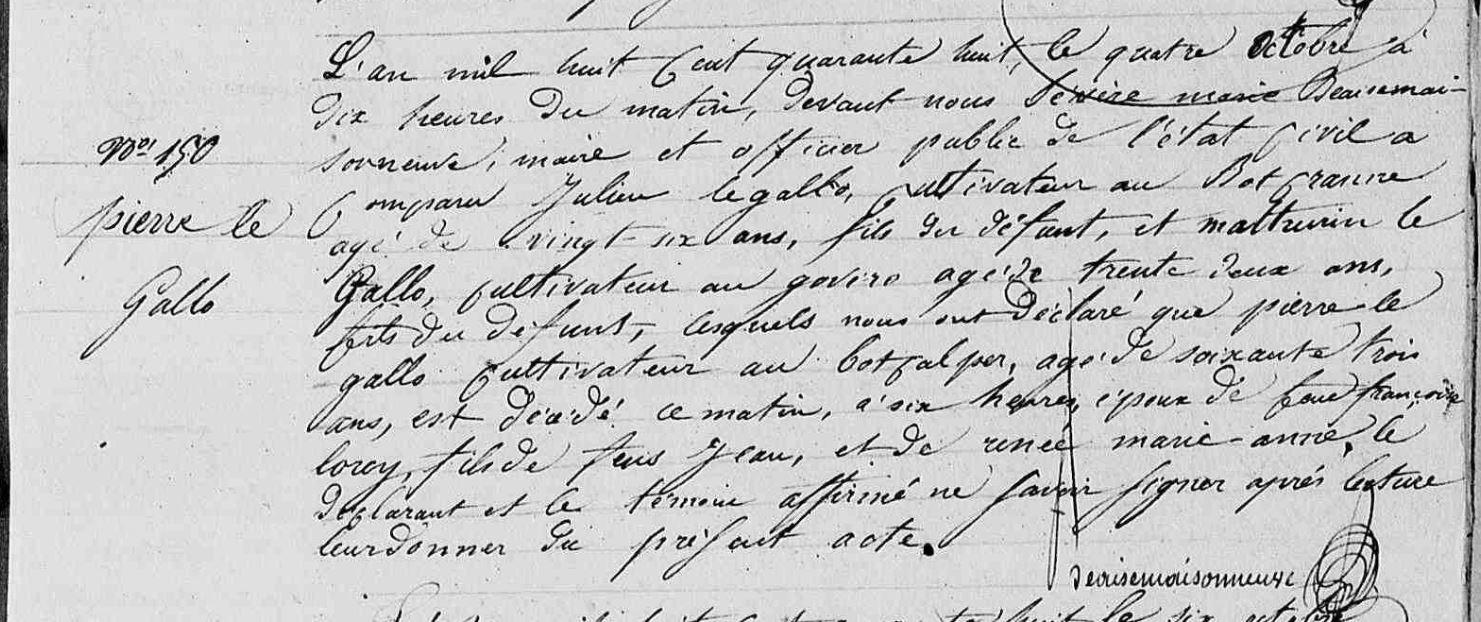 | Décès GALLO (LE) Pierre - 1848 - Baud |