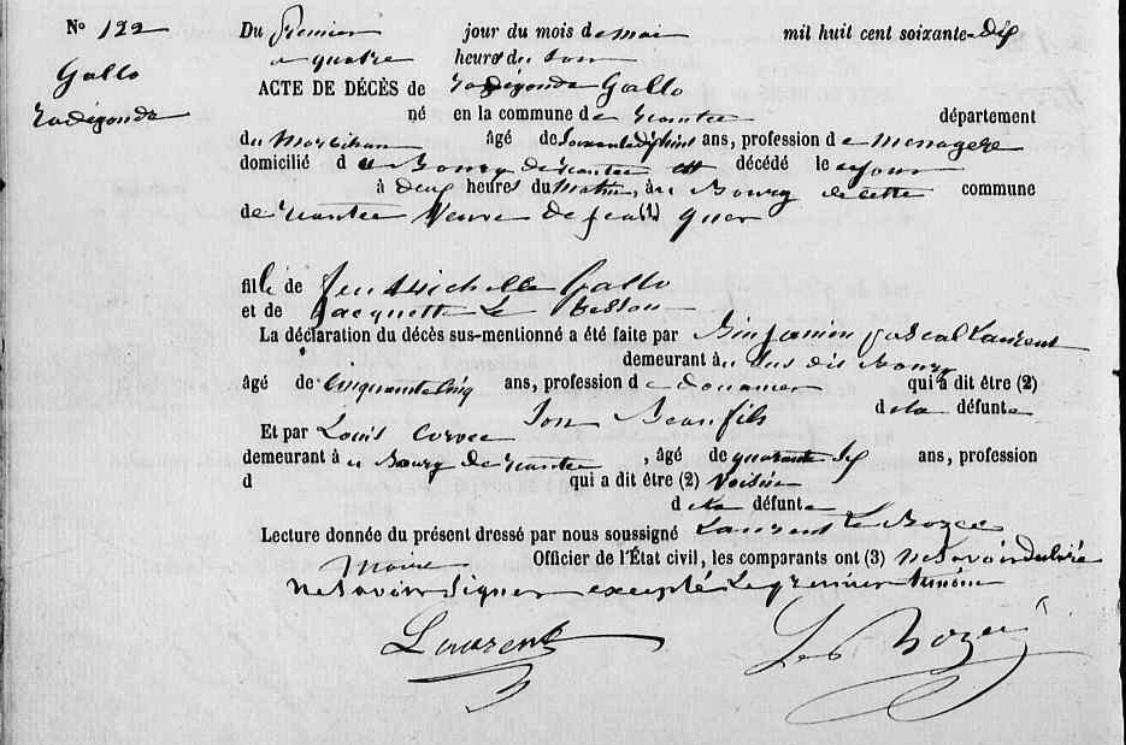 | Décès GALLO Radegonde - 1870 - Riantec |