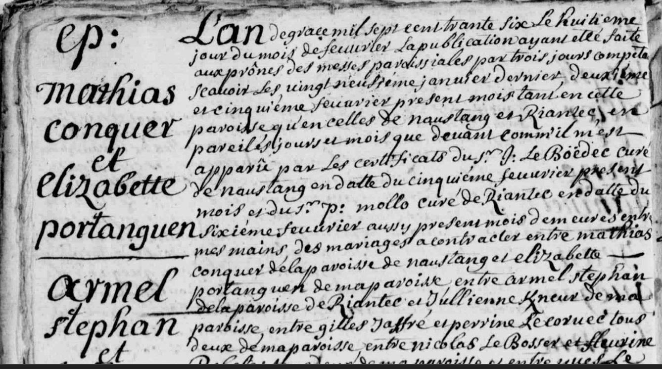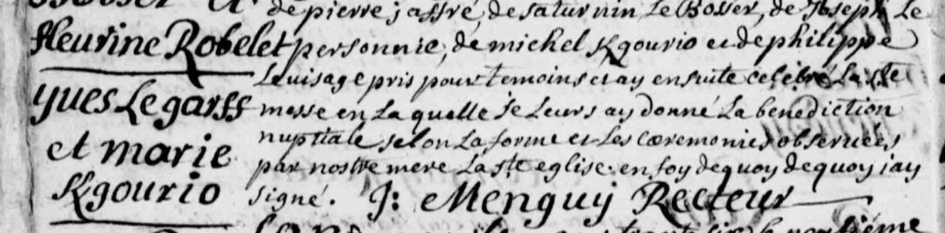| Mariage GARFF (LE) Yves KERGOURIO Marie - 1736 - Plouhinec - 1 |