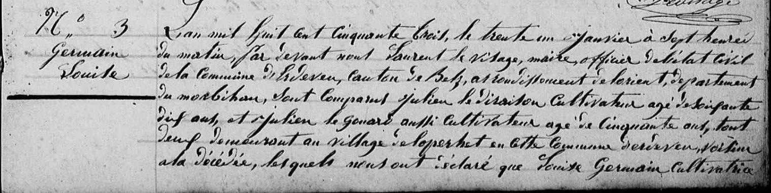 Décès GERMAIN Louise - 1853 - Erdeven - 1 |