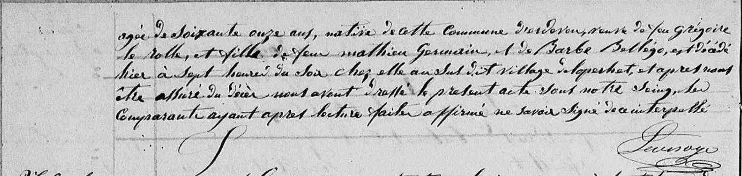 | - BELLEGO Joseph, Sosa 478 (Naissance : 1724 Décès : 1796) - GUILLOTO Marie, Sosa 479 (Naissance : 1723 Décès : 1790) |