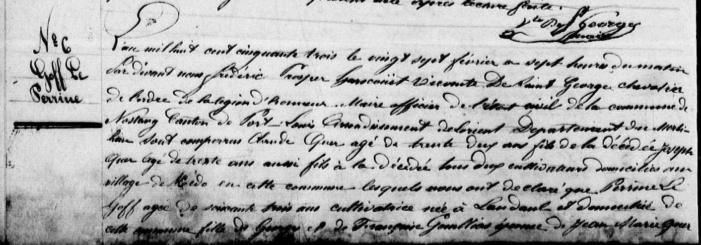 | Naissance GOFF (LE) Perrine - 1723 - Merlevenez |