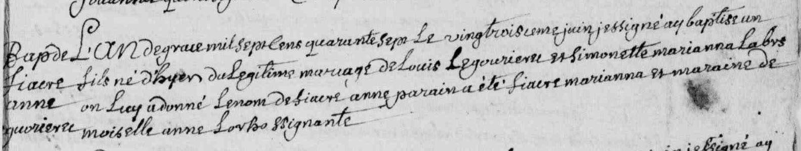 | Baptême GOURIEREC (LE) Fiacre Anne - 1747 - Pluvigner |