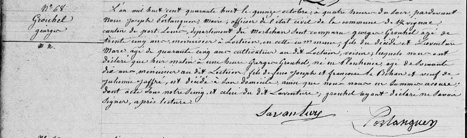 | Décès GROUHEL Georges - 1848 - Kervignac |