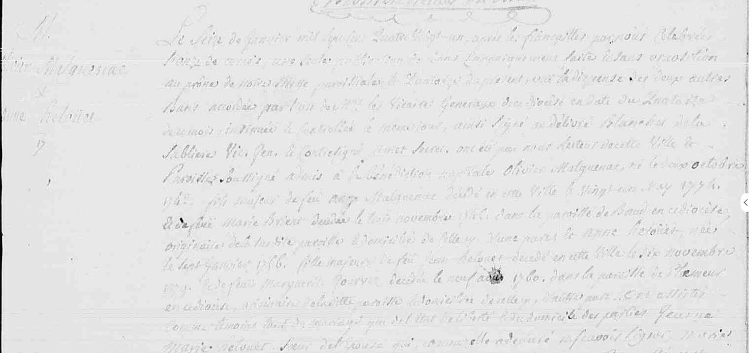 | Mariage MALGUENAC Olivier HELOUET Anne - 1781 - Lorient - 1 |